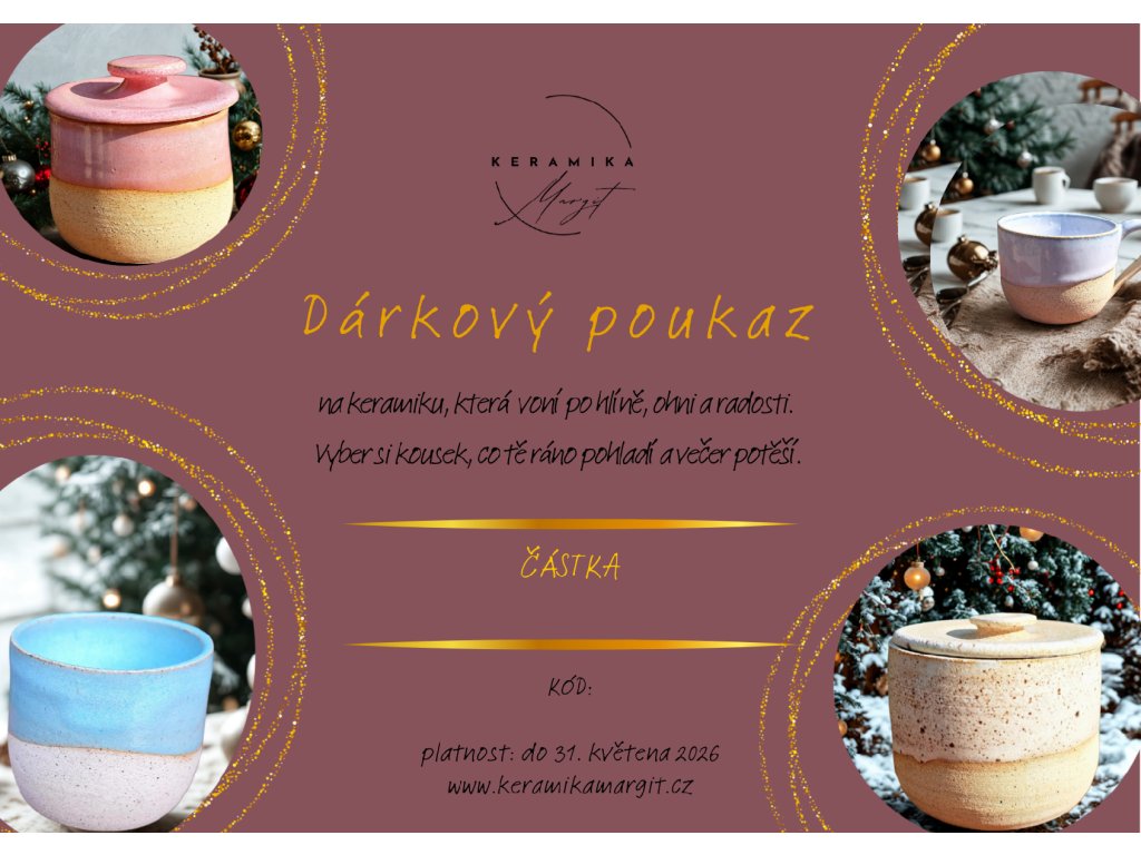 Umožní obdarovanému, aby si sám vybral kousek, který k němu promluví — hrnek, který dokonale padne do ruky, máslenku s vodním filtrem, kterou bude obdivovat každá návštěva, nebo talíř, na kterém i obyčejná snídaně chutná slavnostně.